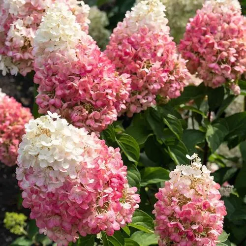 Кусты гортензии метельчатой "Пинки Промис" обладают прочными побегами и темно-зелёными листьями. Они держат форму и не разваливаются, что делает их идеальным выбором для оформления садов и участков. Благодаря красивоцветущим соцветиям, расположенным на верхушках побегов, эти саженцы становятся настоящим украшением любого сада.