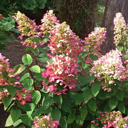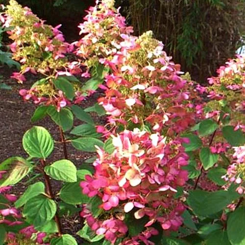 Высота и диаметр взрослого растения у саженцев гортензии метельчатой Руби составляют 250 и 200 сантиметров соответственно. Соцветия этого сорта обладают конической формой и достигают впечатляющих размеров до 30 сантиметров. Вначале они имеют белый цвет, затем плавно переходят в нежно-розовый и к осени приобретают ярко-красное оттенение, что создает потрясающую красочную палитру в вашем саду.