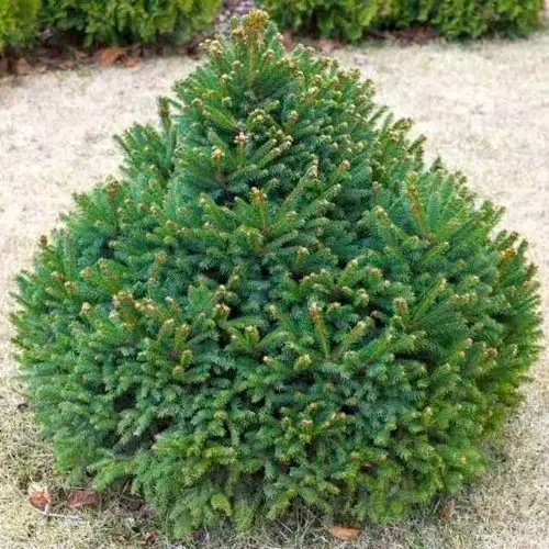 Достигает 2 м в высоту в возрасте 30 лет. Побеги: короткие жесткие с большими почками на концах. Хвоя: короткая, зеленая. Местоположение: солнечное. Требования к почве и влаге средние. Рекомендуется для небольших садов для одиночной посадки и растительных композиций.