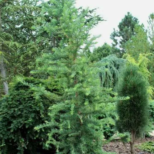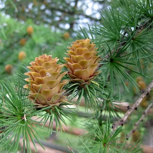 Лиственница Кемпфера - красивое быстрорастущее дерево до 35 м высотой. Длинные, толстые, почти горизонтальные ветви образуют широкопирамидальную крону. Характеризуется высокой скоростью роста, ежегодный прирост в длину составляет 30 см, в ширину – около 15 см. Ствол (довольно часто многовершинный) покрыт тонкой, красно-бурой корой. Молодые побеги красноватые с сизым налетом. Кора ветвей серая, почки блестящие, темно-коричневые. Хвоя сизо-зеленая, мягкая, длинная - до 5 см. Осенью окрашивается в ярко-желтый цвет, позднее лиственницы европейской. Плодоношение лиственницы происходит на 13-15 год жизни. В этот период лиственница обильно покрывается овальными шишками длиной до 3 см, они располагаются в 5–6 разрядов. Шишки состоят из довольно тонких чешуек и держатся на ветках до 3 лет. Шишки в молодости желтовато-зеленые, шаровидные,  с тонкими чешуями, отогнутыми в верхней части подобно лепесткам роз.  Благодаря глубокой корневой системе ветроустойчива. Используется при одиночной посадке в качестве солитера, в групповых посадках для создания массивов, сквозистых групп и аллей в парках, усадьбах и садах большой площади, для создания древесно-кустарниковых групп. Рекомендуется для городского озеленения, оформления территорий домов отдыха, пансионатов, санаториев, больниц.