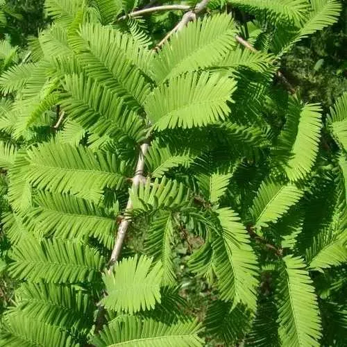Метасеквойя  ГЛИПТОСТРОБОИДНАЯ – быстрорастущее хвойное дерево листопадного типа. Высота достигает 30-40 м, диаметр ствола – 2-2,5 м. Растёт дерево очень быстро, достигая отметки в 12 метров уже в десятилетнем возрасте. Крона дерева имеет форму шпилевидного конуса, однако с возрастом она приобретает округлые очертания. Скелетные ветви Метасеквойи растут параллельно земле. Молодые побеги имеют немного приплюснутую форму. Хвоя Метасеквойи глиптостробоиднойя мягкая, мелкая – длина хвоинок не превышает 3 см. Плоские иголки располагаются на ветвях симметрично. Их окрас меняется на протяжении года: летом хвоинки окрашены в насыщенный темно-зеленый цвет, осенью они приобретают светло-желтый или рубиновый оттенок. С наступлением зимы хвоя Метасеквойи опадает. Цвет коры дерева варьируется от бледно-коричневого до красновато-бурого оттенка. Шишки секвойи висячие, светло-коричневые, округлой формы. Их длина достигает в среднем 1,5 см. Цветет дерево в конце апреля-начале мая. Метасеквойя глиптостробоидная – растение с высокой морозостойкостью. Оно влаголюбиво. Метасеквойя отличается хорошей теневыносливостью.