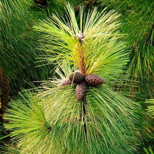 Сосна желтая - растет медленно, в молодом возрасте конической формы. Через 30 лет в высоту достигает более 10 м, а в ширину 2-3 м. Толстые и жесткие побеги — желто-коричневые, а иногда даже оранжевые, лимонные, издают приятный лимонный аромат. Иглы зеленого цвета, очень длинные (до 25 см).