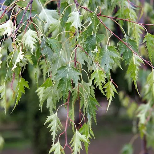 Береза повислая Далекарлийская (Betula pendula Dalecarlica) - один из наиболее изящных сортов березы. Высота дерева во взрослом возрасте может достигать 10м, ширина 6м, крона овальная, ажурная, с плакучими ветвями. Дерево быстрорастущее, до 50 см в год. Листья темно-зеленые, с обратной стороны светлые, резные, узколопастные, осенью желтые. Кора белая, гладкая, у молодых деревьев коричневая. Декоративно в любое время года. Очень вынослива. Хорошо растет на любых почвах.