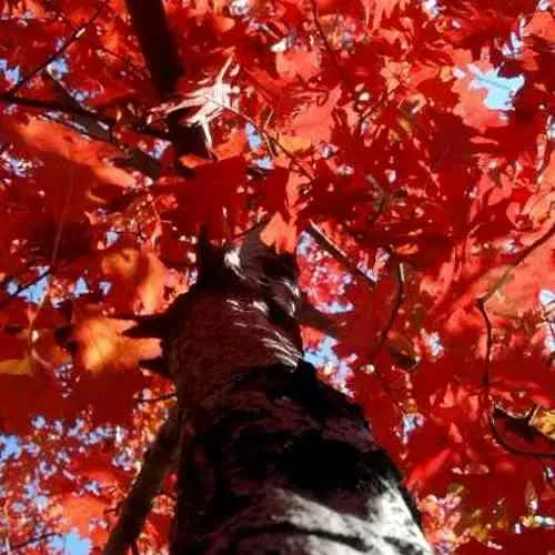 Диаметр ствола у дуба красного 18-30 см. Кора у молодых деревьев тонкая светло-серая, у взрослых - кора потрескавшаяся темно-серого цвета.