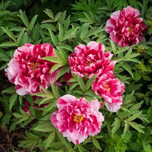 Этот сорт пионов имеет высокий ствол, достигающий до 120 сантиметров, что придает им величественный вид. Листья саженцев пиона древовидного Ред Виз Пинк имеют насыщенную зеленую окраску, что создает гармоничный контраст с цветами.