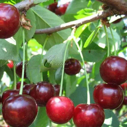 Размер плода: крупный. Вес плода: от 6,6 до 8 г. Форма плода: округлая. Окраска плода: насыщенно темно-красная, с блестящей кожицей. Цвет мякоти: темно-красный. Консистенция мякоти: умеренно плотная и нежная. Вкус: сладко-кислый, отличный. Цвет сока: насыщенно красный. Отделяемость косточки от мякоти: хорошая