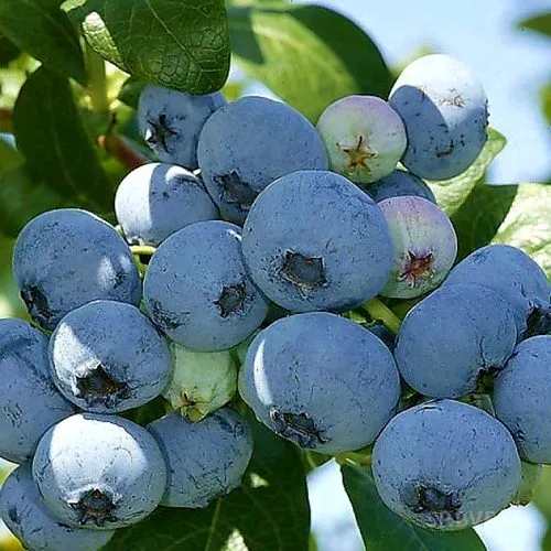 Голубика Нуи – среднерослый раскидистый кустарник, высотой до 1,8 м. Раннеспелый сорт.  Нуи – крупнолистный сорт, листья до 10 см в длину имеют слабое жилкование. Листовые пластинки зеленые и гладкие сверху, а снизу имеют легкое опущение, осенью листья становятся почти багряными. Цветение сорта Нуи длится примерно 12 дней и приходится на конец июня и захватывает начало июля. Форма ягод слегка уплощена, но округлая, весом более 3 г. По мере созревания синие ягоды приобретают характерный сизый налет. На вкус ягоды сладкие с еле уловимой кислинкой, ароматные. Плоды легко отделяются при сборе, что позволяет не только сохранять их целостность, но и транспортировать урожай без потерь. Урожайность высокая и стабильная, 5–6 кг с куста.