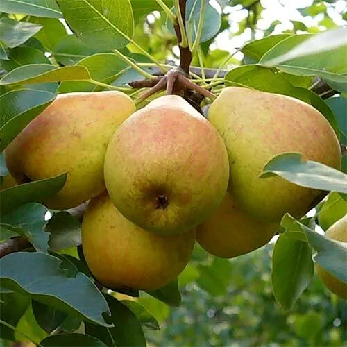 - Лимоновидно-грушевидной, с равными боками, удлинённой формы, одного размера, тёмно-зелёного, а при полной спелости – желтовато-зелёного, с буровато-красным размытым средним покровом, цвета. Отличаются своей привлекательностью. Кожица гладкая, матовая, сухая. Мякоть умеренно плотная и крайне сочная, однородная и приятная, желтоватого цвета. Содержат средние коричневые семена удлинённой формы;