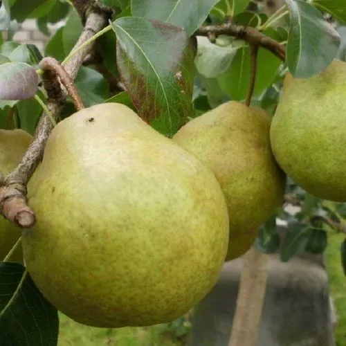 - Широко-грушевидной формы, желтовато-зелёного, а при полном созревании – золотистого жёлтого, с лёгким размытым покровом, цвета, покрыты оржавленностью. Кожица сухая. Мякоть маслянистая, тающая, приятная и сочная, кремово-белого цвета;