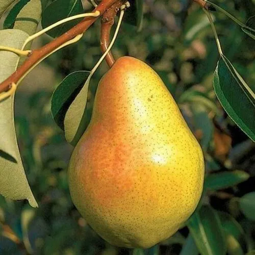 • Широко-грушевидной, правильной формы, зеленовато-жёлтого, с небольшим красноватым покровом, цвета. Кожица гладкая и ровная. Мякоть средне плотная и маслянистая, приятная и сочная, кремового цвета. Семена умеренные, тёмно-коричневого цвета;