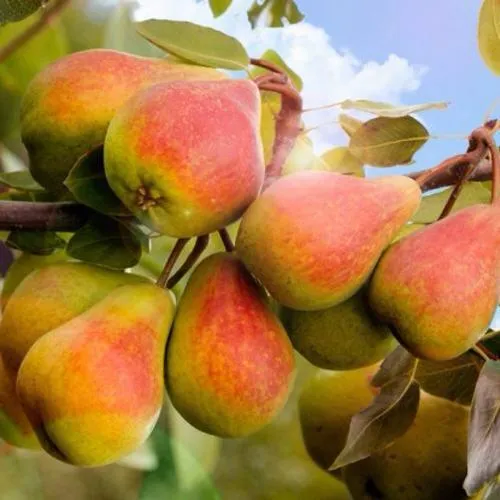 • Обратнояйцевидной или широко-грушевидной, правильной формы, зеленовато-жёлтого, а при полной зрелости – золотисто-жёлтого, с преобладающим сплошным буровато-красным покровом, цвета, покрыты множеством заметных серых подкожных точек. Кожица сухая и блестящая, шероховатая, слегка оржавленная. Мякоть средне плотная и сочная, приятная и маслянистая, белого цвета;