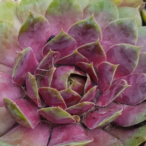 Розетки компактные, диаметром до 10 см, собраны из гладких, мясистых листьев с заострёнными кончиками. Цвет варьируется по сезонам: от зелёного с бордовым центром весной до насыщенного пурпура в летнюю жару. Растение выглядит как «живой инопланетный объект», идеально вписываясь в современные сухие сады, альпийские горки и контейнерные композиции.