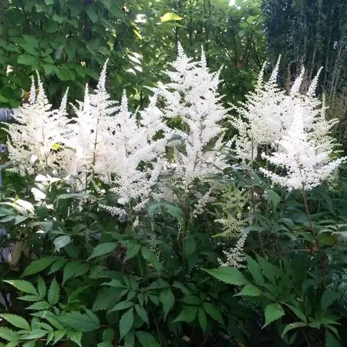 Астильба Браутшлейер из серии Arendsii — изящный сорт с выразительной структурой и снежно-белыми метельчатыми соцветиями. Идеальное решение для оформления притенённых участков, создания мягких цветовых переходов в многолетних композициях и живописного фона для контрастных культур. Цветение наступает в середине лета и остаётся декоративным даже после окончания сезона, когда соцветия приобретают лёгкий бежевый оттенок и продолжают держать форму.