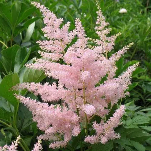 Цветение астильбы «Бронзлауб» – это настоящее зрелище! Соцветия этого растения пушистые и кистеобразные, имеющие метельчатую форму. Размером они довольно крупные, плотные и обеспечивают эффектное цветение на протяжении всего лета. Цветки мелкие, белые с нежным розоватым оттенком, излучающие приятный медовый аромат. Сложно не влюбиться в эту красоту, когда она начинает радовать глаз в июле, и продолжает свое цветение на протяжении длительного времени.