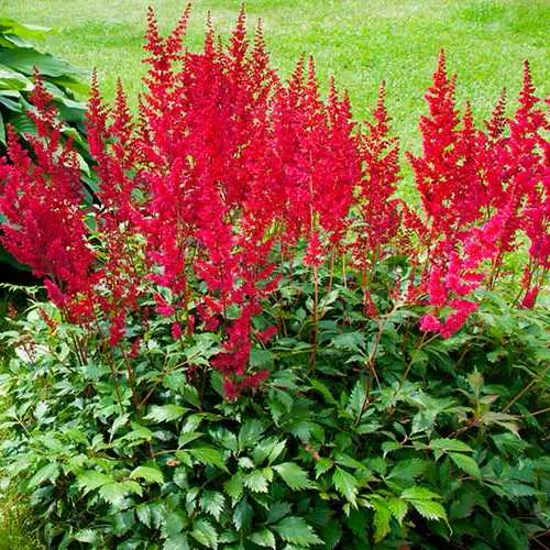 Цветы астильбы "Кобленц" порадуют вас своей уникальной формой — ромбические метельчатые соцветия высотой 20-25 см выглядят очень элегантно. Они имеют среднюю плотность и окрашены в привлекательные красно-малиновые или карминно-красные тона, что делает эту астильбу настоящим украшением вашего сада.