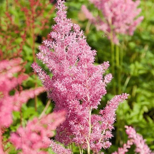 Высота растения достигает 50–60 см, ширина — до 40 см. Куст плотный, симметричный, с вертикальными метельчатыми соцветиями до 30 см в длину. Цветки мелкие, светло-розовые, собраны в изящные пирамиды. Цветение раннее и стабильное, длится до 25 дней. Листва резная, насыщенно-зелёная, с лёгким бронзовым блеском. Даже вне периода цветения растение остаётся декоративным и аккуратным.