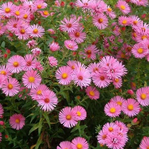 Многолетние травянистые растения. Стебли прямые, ветвящиеся, густо опушенные. Листья ланцетные или продолговато-ланцетные. Корзинки 3-4 см в диаметре, собраны в крупные густые метельчатые соцветия, на хорошо развитом кусте их бывает до 20-30 шт. Язычковые цветки карминовые, розовые, голубые, фиолетовые и пурпуровые; трубчатые — желтые, красноватые или пурпуровые. Все сорта астры новоанглийской цветут осенью, в сентябре - октябре, а на юге, если позволяет погода, цветут и в ноябре. Зимостойкость полная.