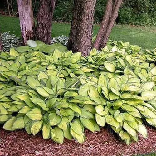 Идеально подходит для посадки вокруг деревьев, для создания красивых альпийских горок и стильных бордюров. Цветоводы любят использовать хосту Голд Стандарт Форчуна для оформления водоемов, обеспечивая роскошный зеленый фон.