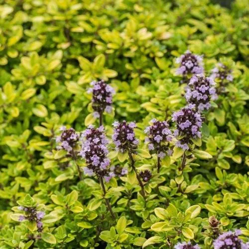 В период цветения, который приходится на июнь-июль, тимьян лимоннопахнущий "Aureus" погружается в облако мелких розовых цветов с фиолетовым оттенком. Их длина составляет всего 0,4-0,8 см. Легкий, приятный аромат лимона создаёт атмосферу свежести в вашем саду.