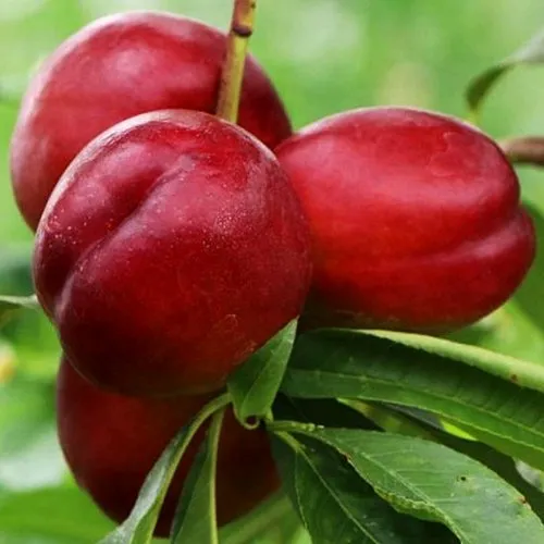 - Округлой формы, по большей части покрыты размытым карминовым покровом. Кожица ровная, не имеет ворсинок. Мякоть приятная и сочная, тающая, жёлтого, а у косточки - малинового цвета, сама она легко извлекается;