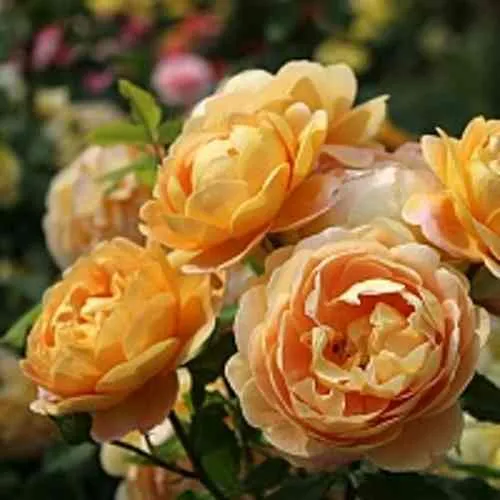 Великолепные цветки этой изумительной английской розы сочетают старинную форму с вполне современной окраской. Желтые с красным бутоны распускаются в густомахровые цветки 8-14 см в диаметре, с внутренними лепестками, образующими чашевидную форму, и отогнутыми внешними. Цвет обычно насыщенно яично-желтый, но могут появляться и персиковые или розовые тона, создавая медно-желтый оттенок. Цветки появляются в небольших кистях, часто поникают. Аромат легкий или средний, его описывают как пряный или фруктовый. Обильно цветет ранним летом, затем следуют быстро повторяющиеся волны повторного цветения до конца сезона. Побеги слегка или умеренно колючие, дуговидные, с блестящей ярко-зеленой листвой. Куст округлый, раскидистый, достигает 120-150 см высотой и столько же шириной в самом холодном климате, и до 180-200 см в жарких странах.