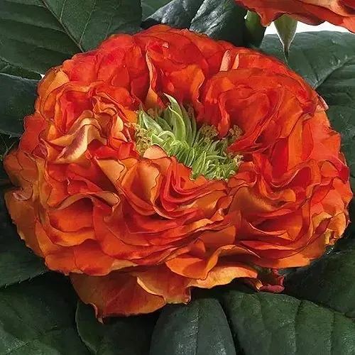 Роза Флеш Ай – относительно новый сорт, который уже успел покорить сердца современных садоводов. С первого взгляда на это чудо, даже не скажешь, что это роза. Густые, оранжево-красные бутоны, имеют контрастную зеленую серединку. Лепестки, которые плотно и неаккуратно напиханы в цветок, создают невероятный объем бутону. Диаметр цветка в полном роспуске составляет от 10 до 12 см. Куст достигает до 120 см в высоту и располагает на себе по 1-3 бутона. Сорт отличается непрерывным цветением на протяжении всего сезона. Роза имеет слабовыраженный легкий аромат. Благодаря своему нестандартному внешнему виду, цветок часто выращивается в коммерческих целях, под срез на букеты, а также им украшают придворные участки, высаживая красивыми группами и создавая настоящие цветочные композиции на клумбе.