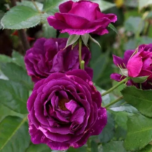 Розы Мистерьез созданы для любителей необычного и нестандартного. Цвет сиреневый или фиолетово-бордовый. Форма чашевидная, махровая. Размер – 6-8 см. Во время цветения наружные листья раскрываются, а внутренние лепестки, их в бутоне 25-30 штук, остаются плотно сжатыми. Цветоносы формируют группу из 5 штук, цветут почти одновременно, образуя пышный букет. Цветение повторное, в течение сезона. Кусты энергичные, сильные, высотой 100-120 см. Сорт используется для украшения ландшафта и оформления букетов.