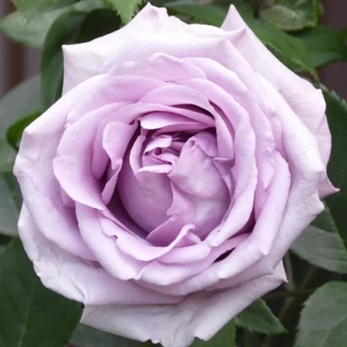 Цветение начинается в июне и продолжается до октября с повторными волнами. Бутоны крупные, диаметром 10–12 см, бокаловидной формы, раскрываются медленно. Цвет лепестков — глубокий сиренево-лавандовый с серебристым подтоном, особенно выразительный в вечернем свете или лёгкой полутени. Цветки одиночные или собраны в кисти по 3–5 штук. Аромат насыщенный, сладковатый, с нотами старинной розы и лёгким фруктовым шлейфом.