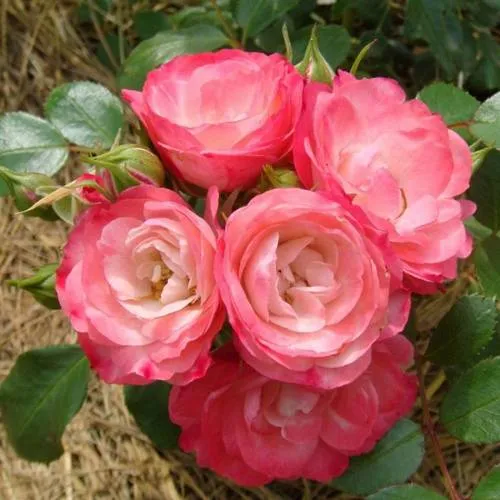 Кусты данной розы достигают высоты от 60 до 80 см и ширины до 90 см, что делает их идеальными для создания живых изгородей и бордюров. Листья обладают привлекательным блеском, имеют зелёный цвет и средний размер – около 3,5 см в длину. Эта культура полностью лишена шипов, что делает её гораздо более безопасной при работе в саду.
