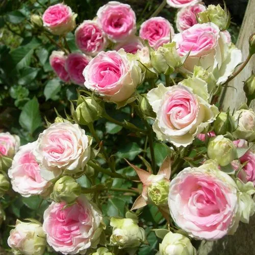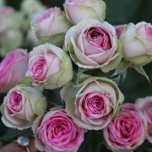 Бутоны розы спрей Мими Эден — это истинное произведение искусства. Белоснежные лепестки огранены розовым центром и зелёной окантовкой, что придает им особую нежность и изысканность. В процессе цветения, внешние лепестки остаются белыми или светло-розовыми, в то время как внутренние приобретают насыщенный ярко-розовый цвет. Основная окраска цветка — розовая, придающая ему романтический и утонченный вид.