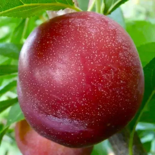 Плод имеет круглую форму, бордовый или фиолетовый цвет, однако могут встречаться и более светлые экземпляры. На поверхности слив отмечается едва заметный сизый налёт. Кожура плодов — очень плотная, мякоть — также плотная, тёмно-бордовая, ароматная, сладкая с кислинкой. Косточка небольшая, крепко сидящая в мякоти.