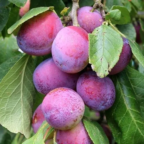 Отдельного внимания заслуживают плоды Блю Свит. Они очень крупные - одна слива может весить 75-80 грамм. Их форма овальная, слегка приплюснутая. Спелые плоды приобретают эффектный фиолетовый оттенок, становятся гладкими и матовыми. Мякоть сливы нежно-розовая, плотная, очень сочная, приятного сладко-кислого вкуса. Ей присущ тонкий и едва уловимый фруктовый аромат. Косточка легко вынимается, что позволяет легко использовать плоды в кулинарии. Замечательны они и в свежем виде: их освежающий вкус - то, что нужно для лета!