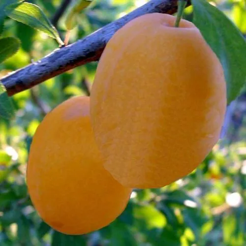 - Удлинённо-грушевидной или удлинённо овальной формы, одного размера, жёлтого цвета, покрыты восковым налётом. Мякоть приятная и сочная, по текстуре – зернистая, жёлто-оранжевого цвета. Косточка небольшая, овальной, сплюснутой формы, отделяется от мякоти. Сок не имеет цвета;