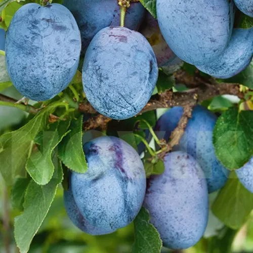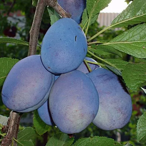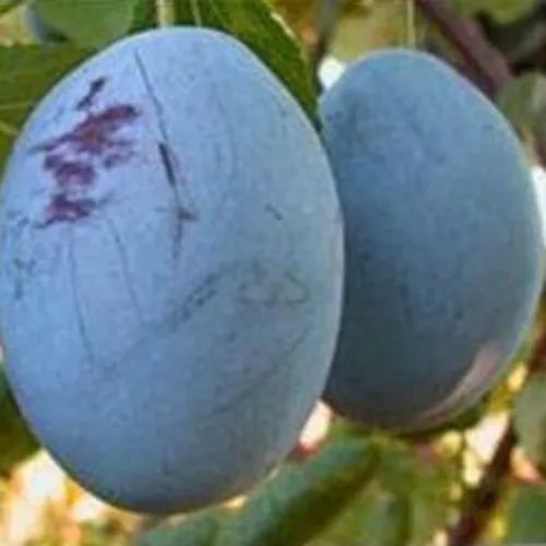 Плоды крупные (средняя масса 35, максимальная – 45 г), одномерные, овальной формы, фиолетово-бурой окраски. Кожица средней плотности, покрыта сильным восковым налетом, легко снимающимся с плода. Мякоть желтая, нежная, сочная, кисло-сладкого вкуса. Косточка среднего размера, от мякоти отделяется хорошо. Сорт десертный.