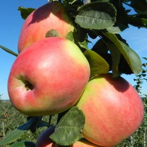 Нахождение, восток псковской области. В 2024 году, второй год после посадки двухлетнего саженца. Первые два яблока, вес 400 и 450 грамм. Созрели в конце сентября. Красивые, румяные. На вкус очень хороши, сочные, больше сладости. Должны немного полежать, но можно есть прямо с яблони. Отличный сорт. Хорошие саженцы.