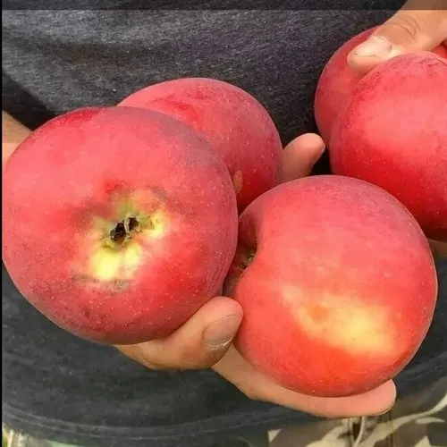 Вкус этих яблок – кисло-сладкий, отлично сбалансированный, с лёгкими дюшесными нотками, что придаёт им десертный характер. Мякоть нежная, сочная, слегка рыхлая, что делает её идеальной для свежего употребления. К концу созревания она приобретает розоватые прожилки внутри, усиливающие внешний вид среза. Этот сорт обладает сильным ароматом, который наполняет ваш сад приятным, свежим запахом.